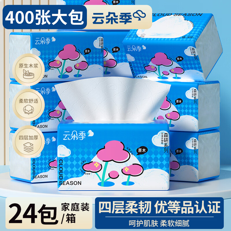 云朵季400张大包纸巾气垫抽纸餐巾纸卫生纸面巾纸大尺寸优等品原木纸抽 4层 400张*24包