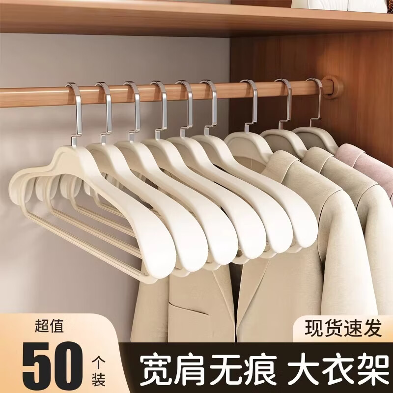 吱凡日本衣架家用挂衣无痕防肩角加粗加大衣服架子防滑晾衣撑加厚成人 象牙白【无痕防滑-高承重】 10个