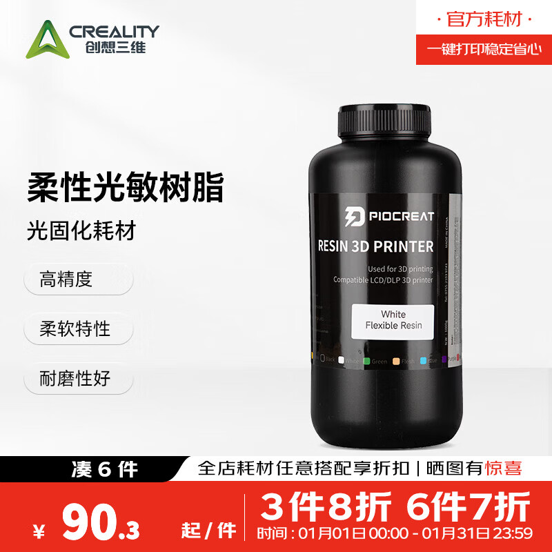创想三维(Creality 3D)通用 柔性光敏树脂低气味提升精度高精度光固化光敏树脂 柔性树脂_白色_1KG 1KG