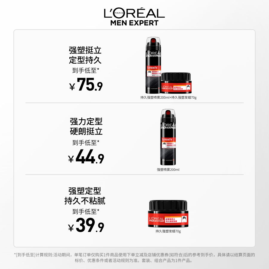 欧莱雅男士强塑定型喷雾持久造型三孔喷雾塑型发蜡套装男自然蓬松