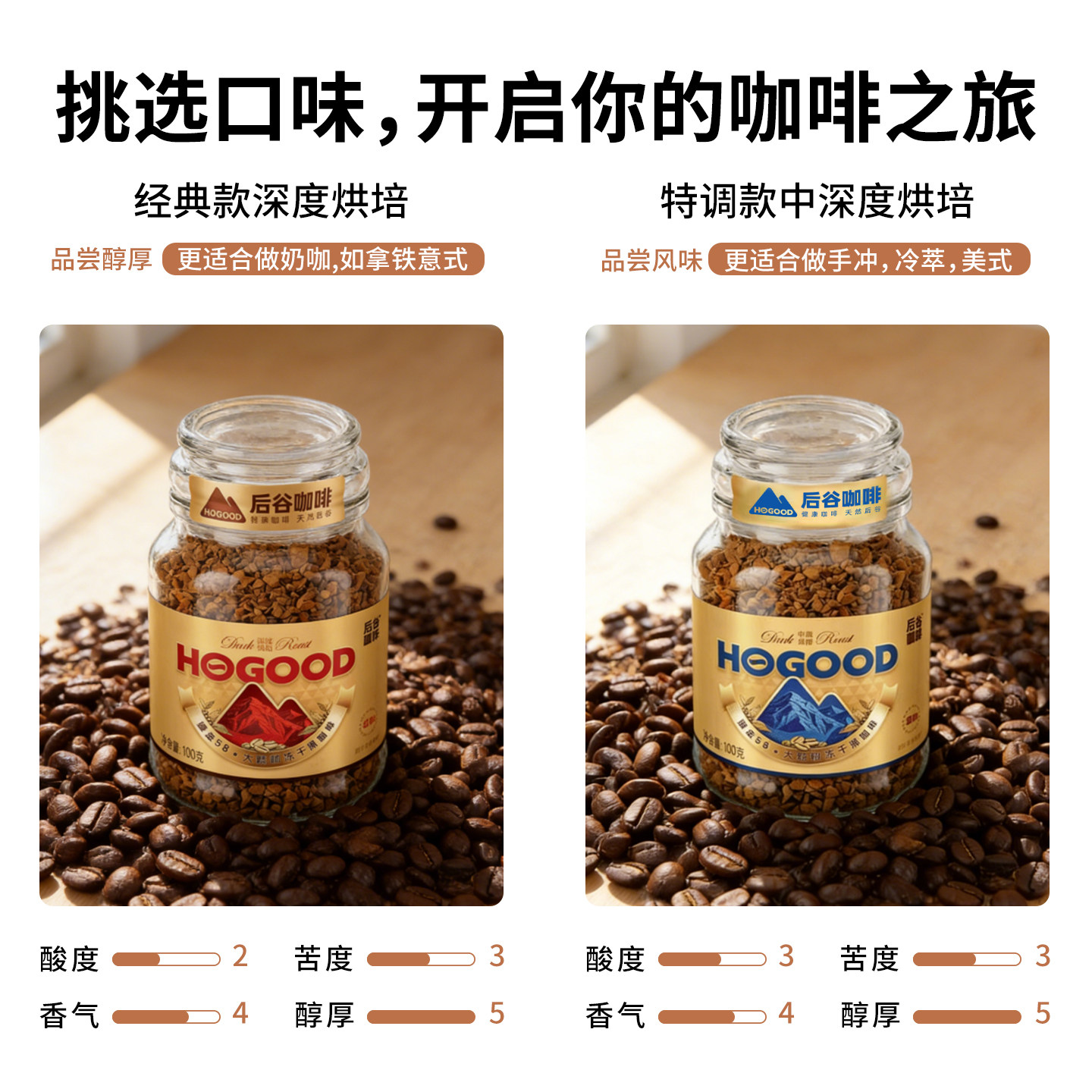 【超级立减12%】(叠加淘金币到手更低!!!)后谷鎏金精品冻干咖啡,400次云南小粒速溶浓缩黑咖啡粉,罐装便携,口感醇厚浓郁,现享优惠价,品质之选,速溶方便,居家办公必备!