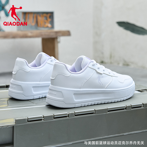 乔丹女款冬季百搭学生皮面空军一号板鞋休闲青少年小白鞋厚底增高,
