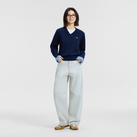 69( CZ007 12ue5dsmr6i) https://m.tb.cn/h.i96ENVN 美特斯邦威毛衣女秋季新款潮流休闲V领假两件花边长袖毛衫女