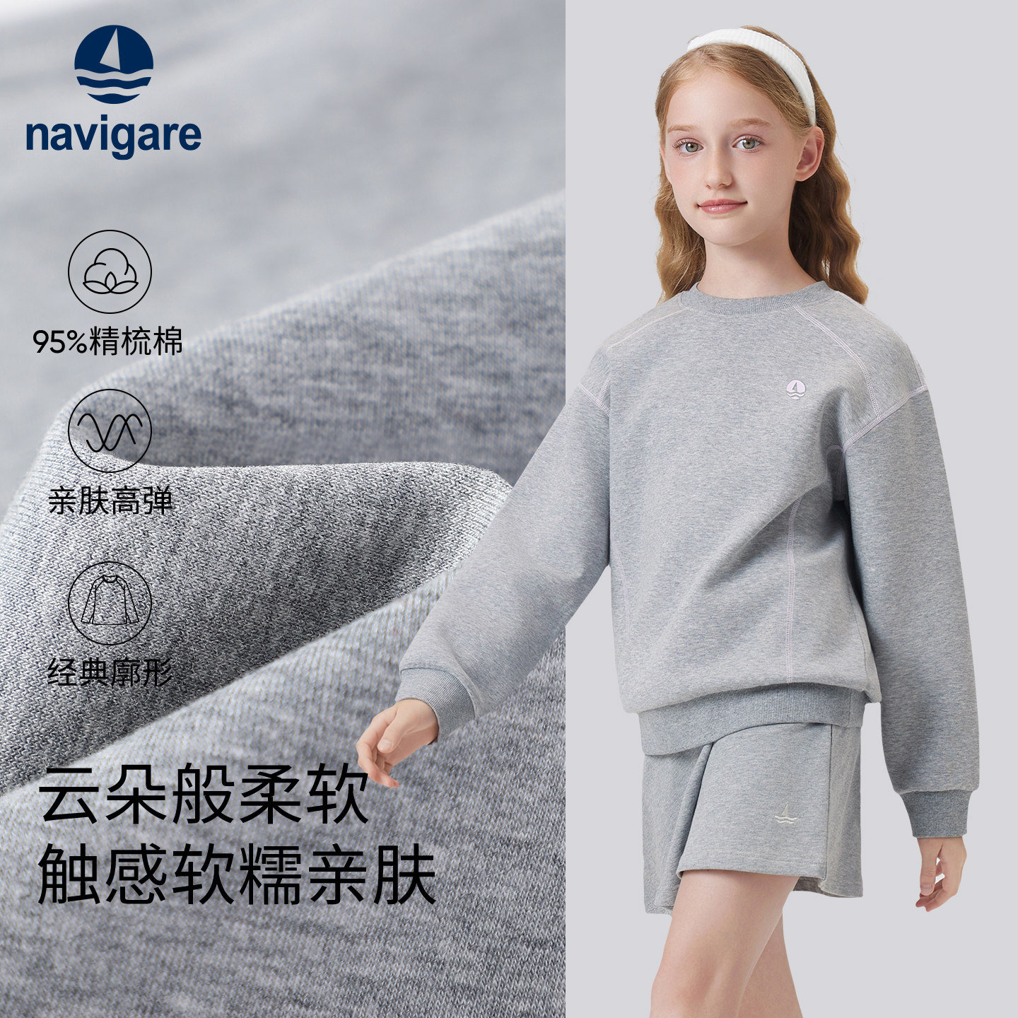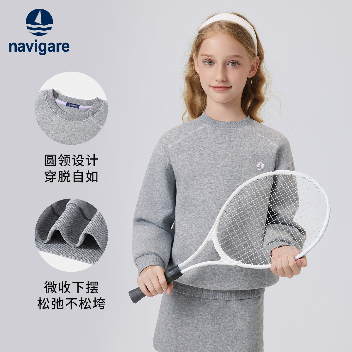 Navigare意大利小帆船女童卫衣2026新春秋季儿童圆领长袖宽松上衣