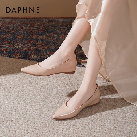达芙妮裸色浅口单鞋女2026新款春季法式平底鞋子女尖头通勤高跟鞋