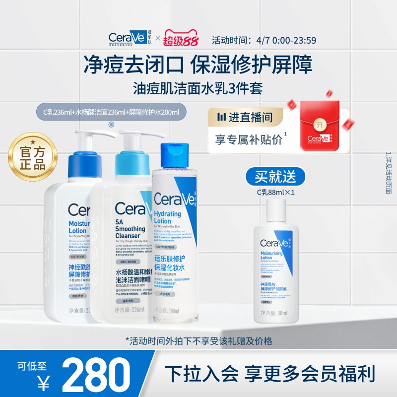 98( MF168 oAJ25eJb96e) https://m.tb.cn/h.ilgC45R CeraVe适乐肤水乳霜洁面套装敏感肌男女士保湿补水修护肤官方正品