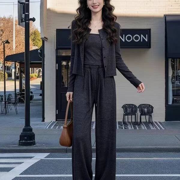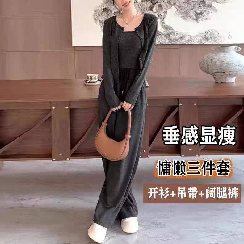 唐狮DESSO轻熟气质套装新款背心开衫外套阔腿裤时装糯米三件套新