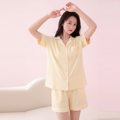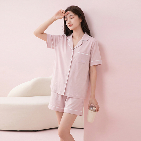芬腾睡衣女10.0%棉家居服,夏季短袖两件套,大码可外穿,舒适透气,居家出行两不误!