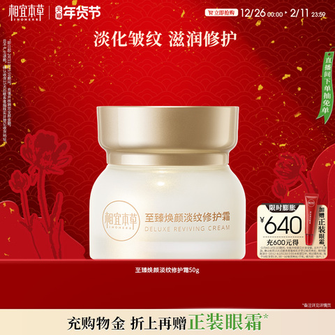 【拍两件原价200减商品券127-立减24-淘金币1到手每件24】相宜本草至臻焕颜淡纹水乳霜,补水修护双重功效,改善细纹,肌肤更显细腻光滑!