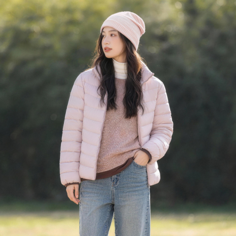 雪中飞26春装新款女立领短款轻薄羽绒服排骨羽绒休闲通勤居家S