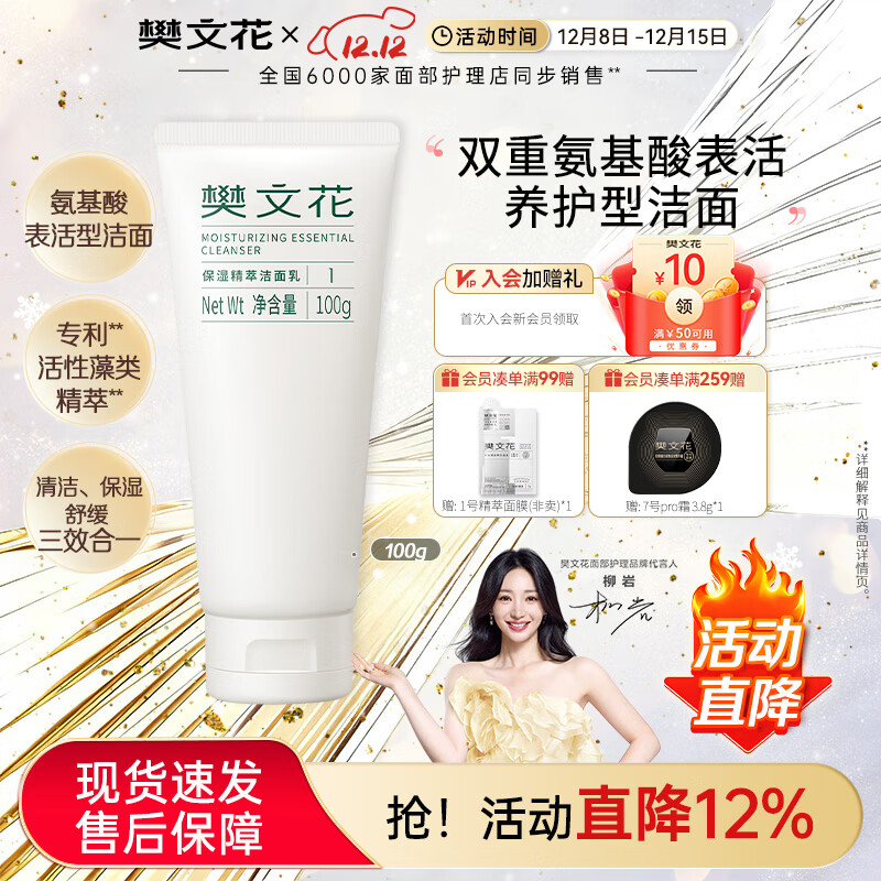 樊文花1号保湿精萃洁面乳氨基酸洁面不刺激泡沫丰富洗面奶圣诞节礼物 100g