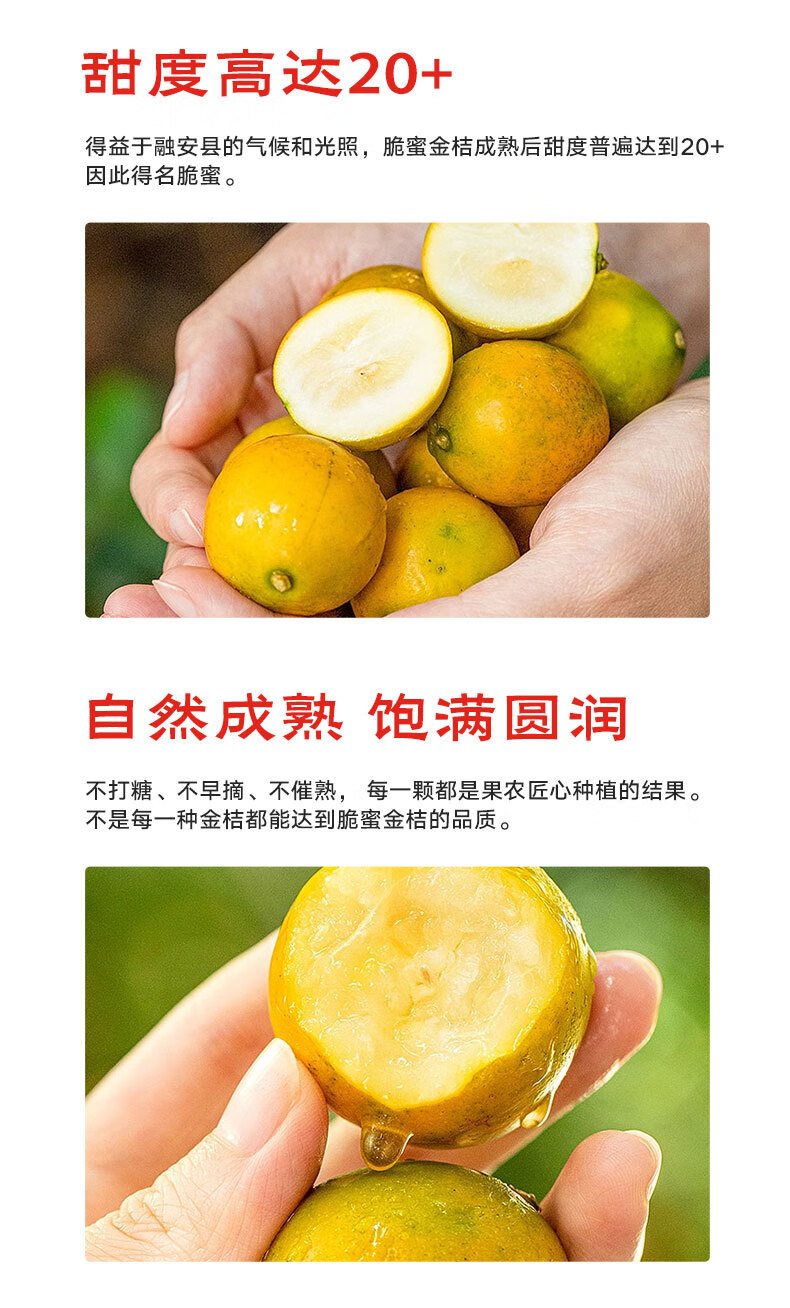 京觅广西融安金桔 第三代脆蜜金柑 净重1.8斤装 单果13g+源头直发包邮