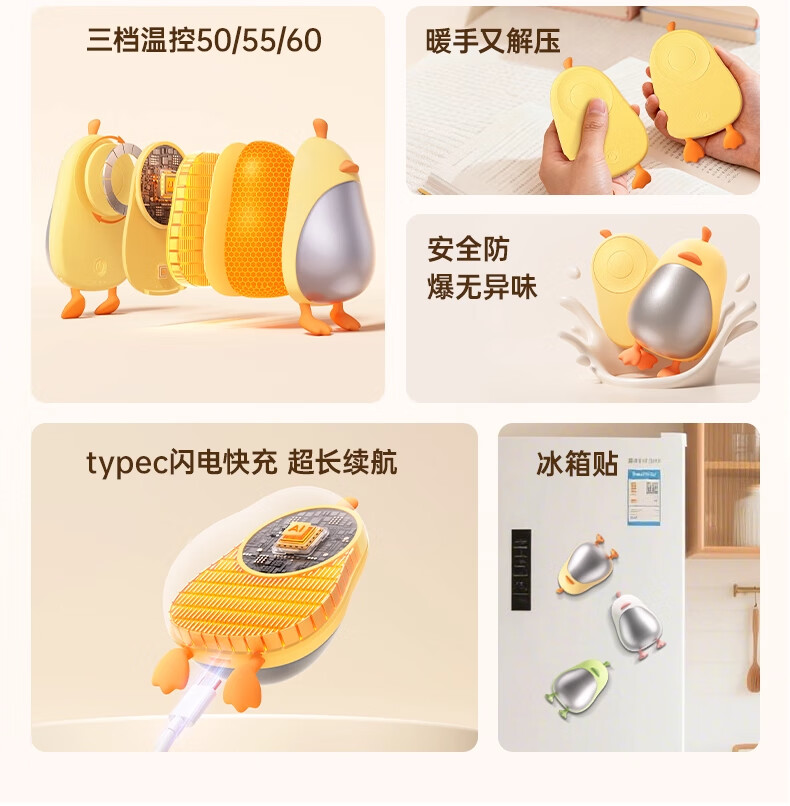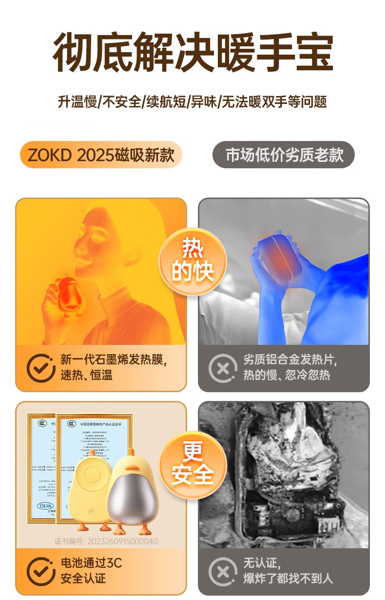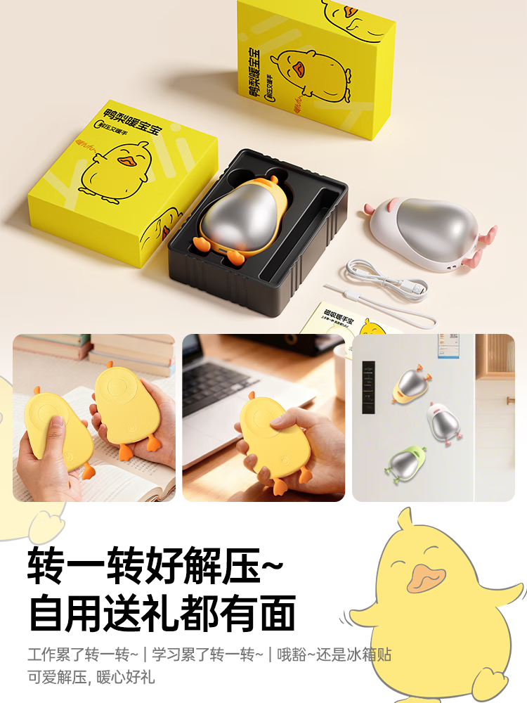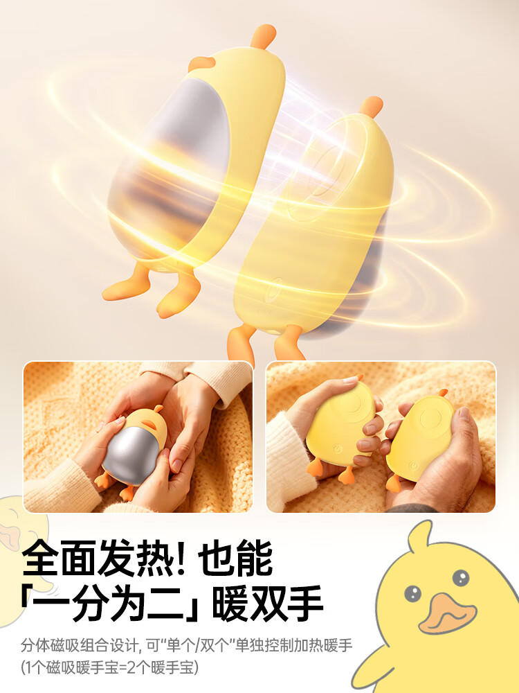 Zokd【永不分梨鸭丨次日达】磁吸暖手宝手握热水袋礼物3C认证暖水袋 【鸭绒黄】2000mAh丨免费刻字丨3C认证