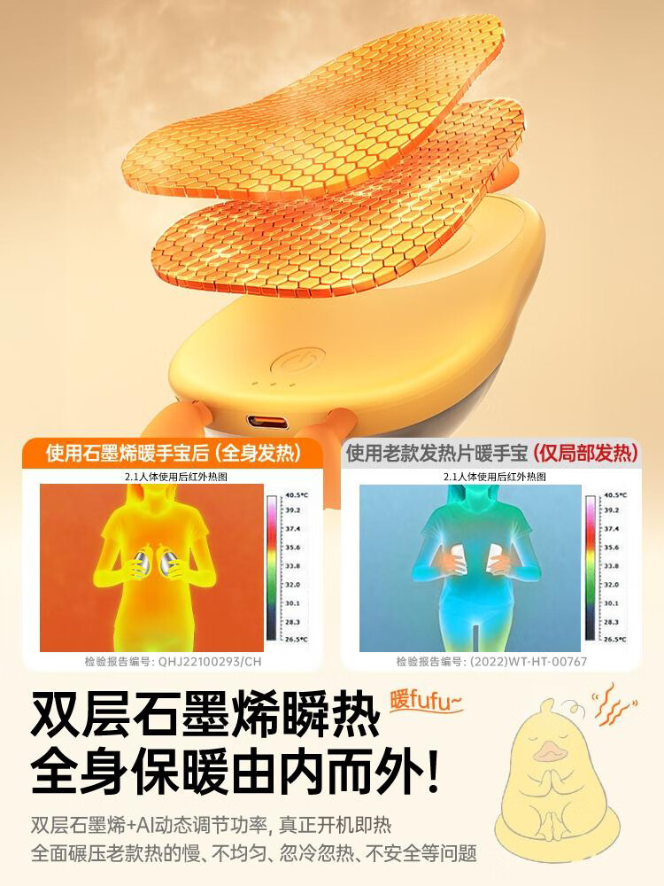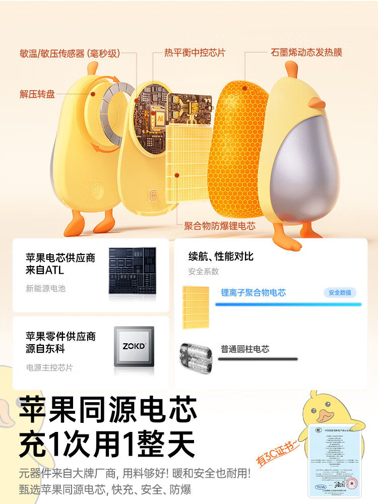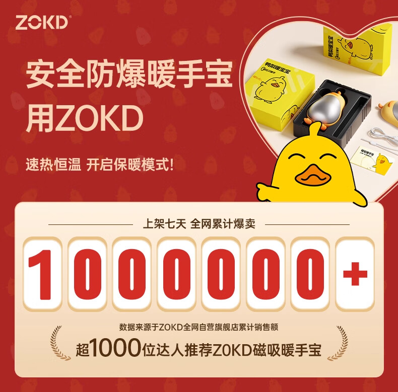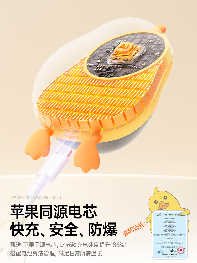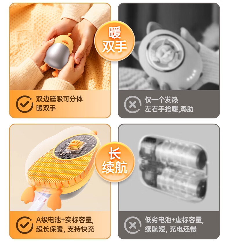 Zokd【永不分梨鸭丨次日达】磁吸暖手宝手握热水袋礼物3C认证暖水袋 【鸭绒黄】2000mAh丨免费刻字丨3C认证