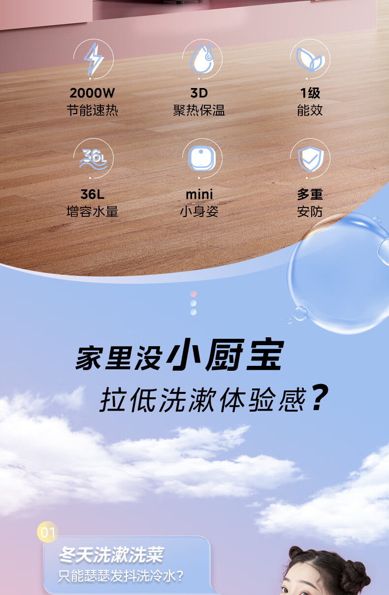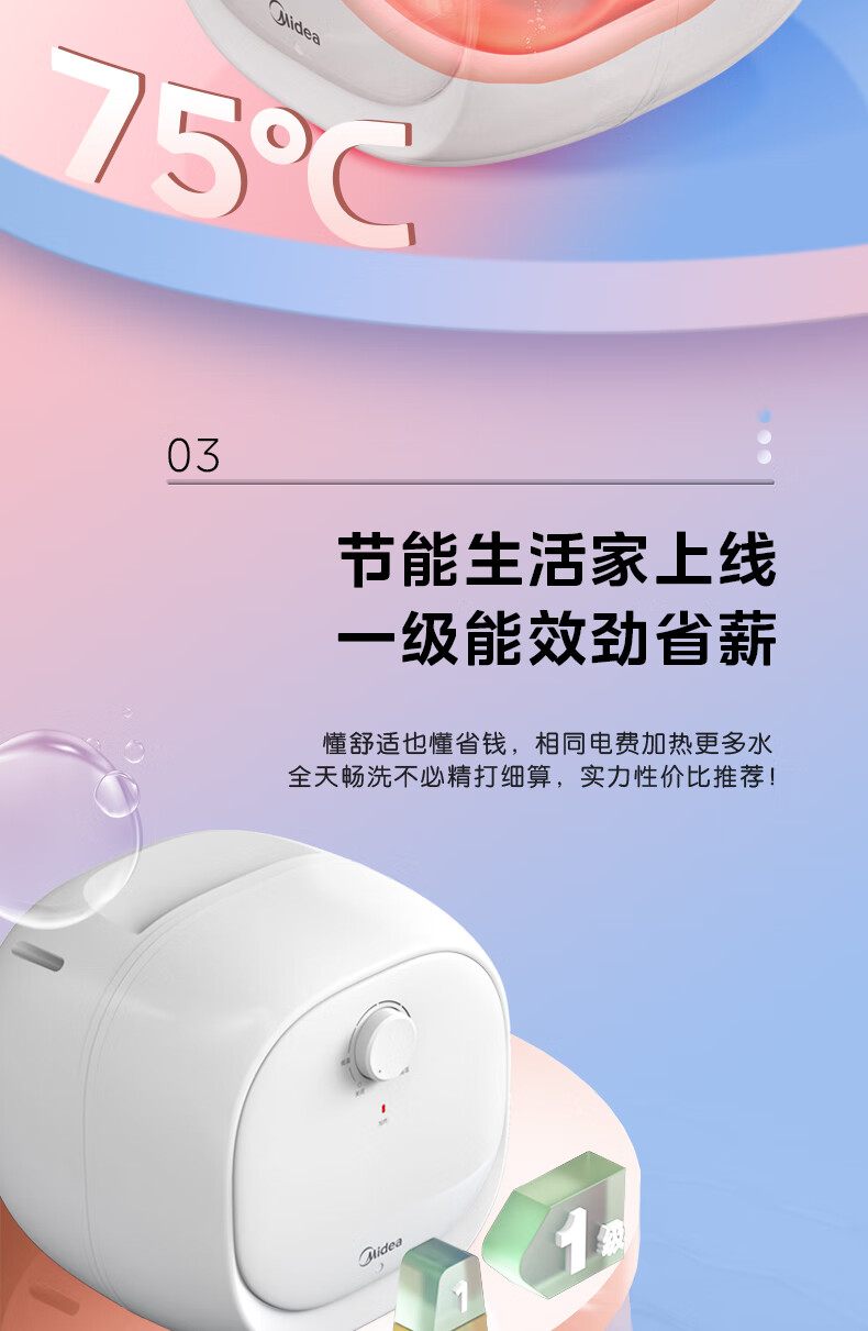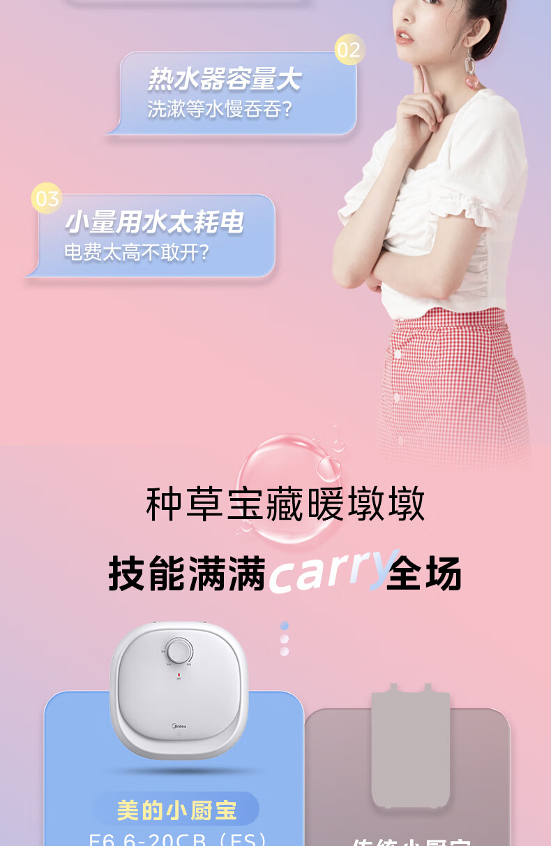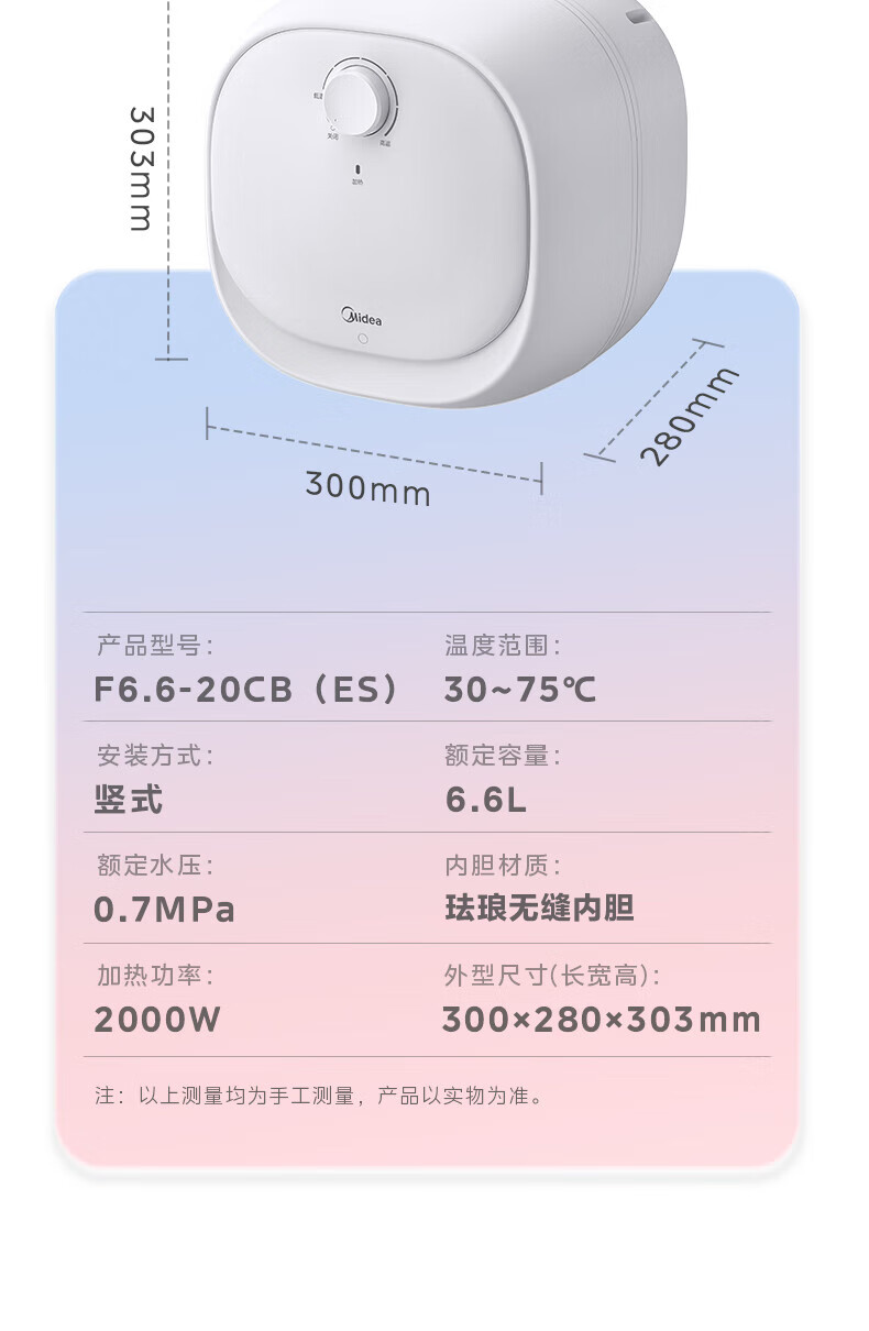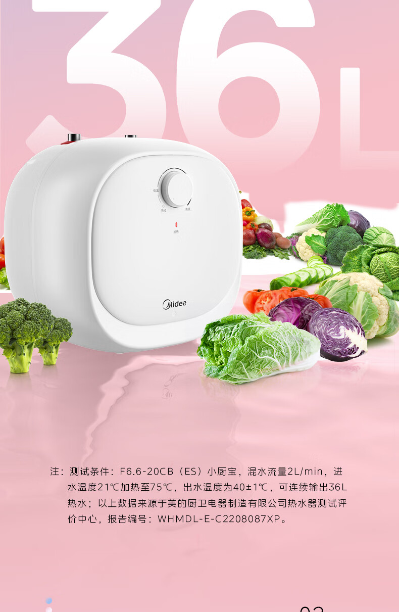 美的(Midea)【8年质保】电热水器小厨宝6.6L出水36L一级能效洗碗洗菜热水器厨房热水宝国家补贴F6.6-20CB(ES)