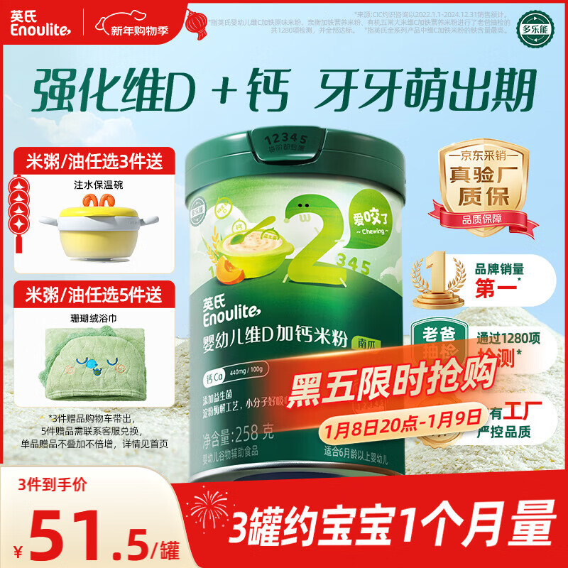 英氏婴幼儿米粉258g维D加钙南瓜味多乐能营养宝宝辅食加钙米糊2阶7月+
