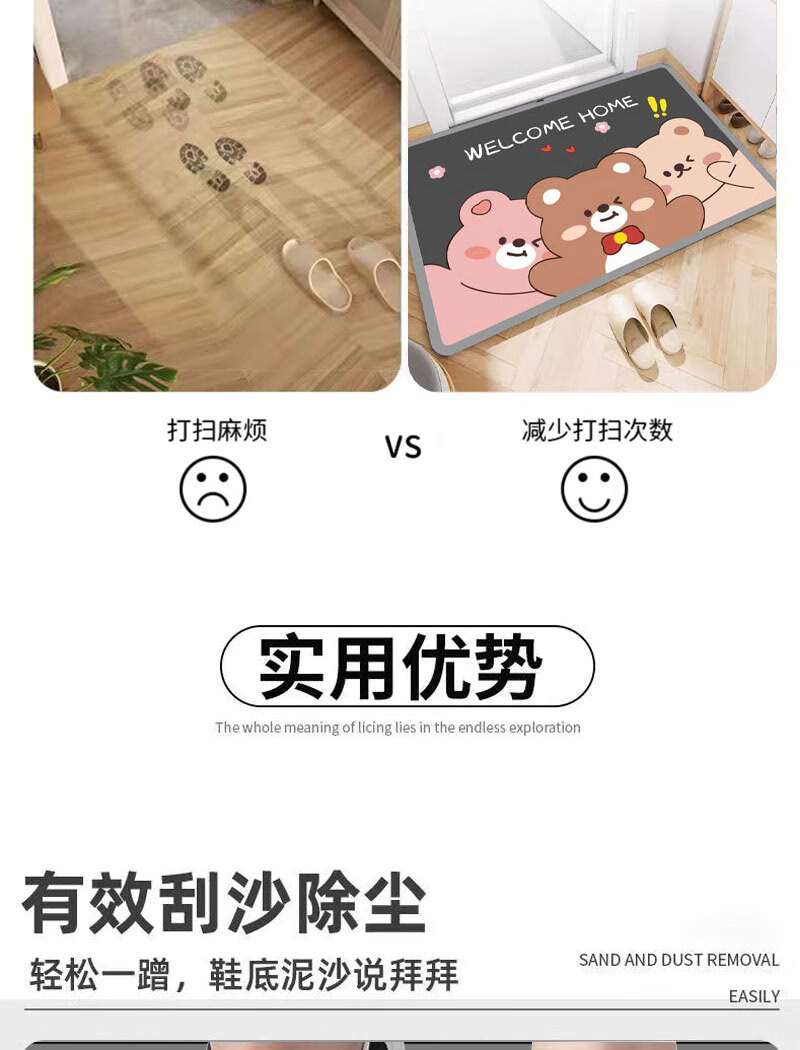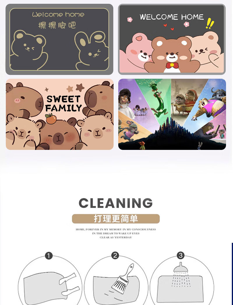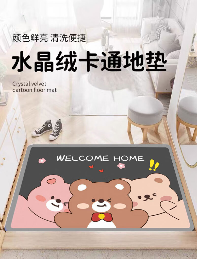 卡通通用汽车脚垫卡通入户水晶绒脚垫防尘耐脏好清理 卡通地垫01 40CM*60CM
