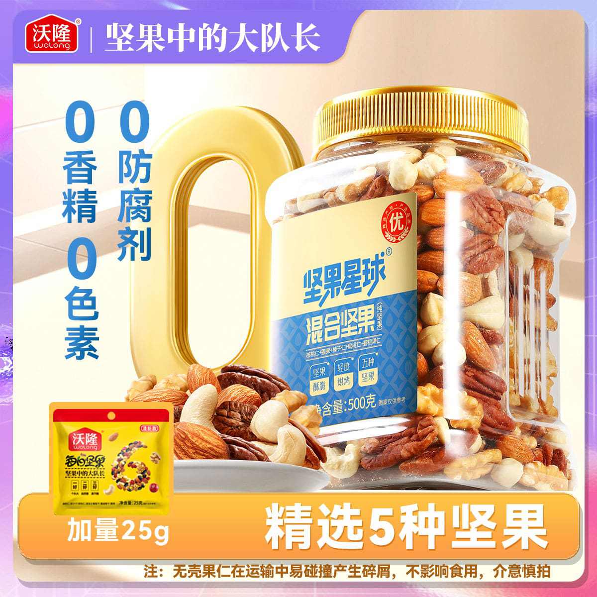 沃隆 混合果仁500g纯坚果罐装加量25g混合干果健康孕妇休闲零食