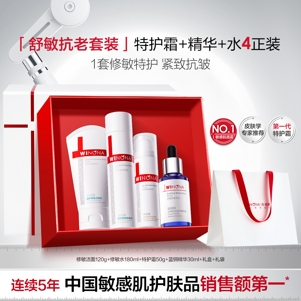 薇诺娜 【舒敏抗老礼盒】特护霜水精华4件套修护受损屏障改善泛红敏感