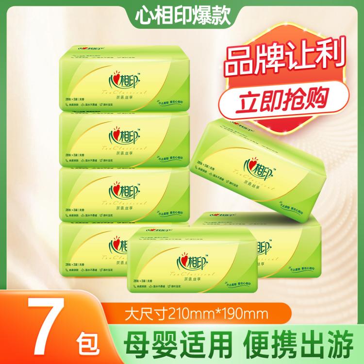 心相印 【7包】家用抽纸便携出游面巾纸手纸擦餐巾纸实惠装卫生纸 【售价】:¥12.90 【优惠券】:¥3.00 下单链接: