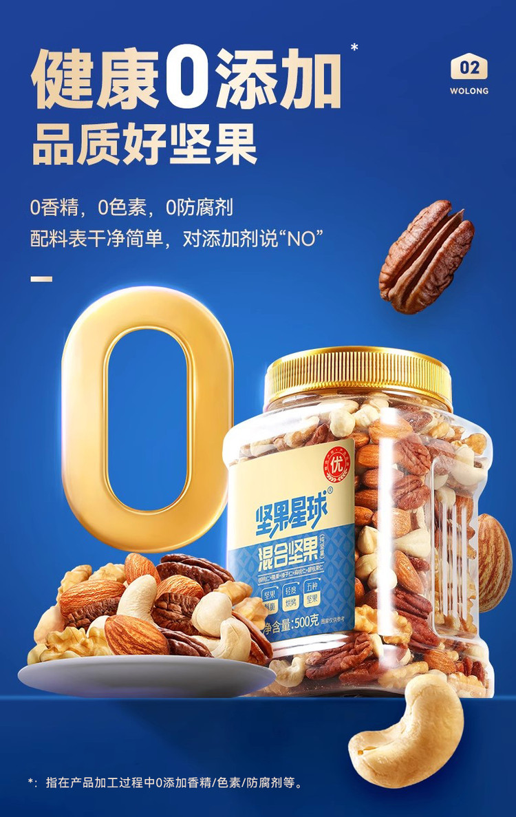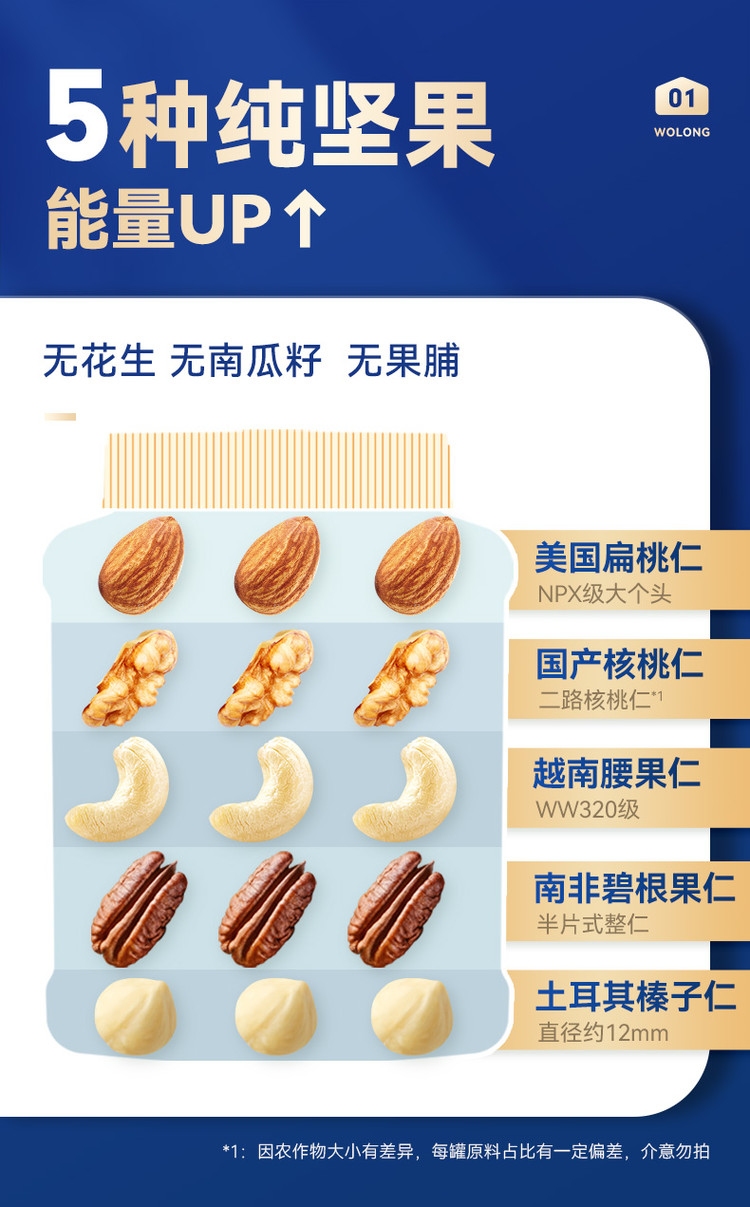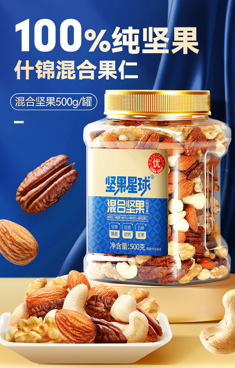 沃隆 混合果仁500g纯坚果罐装加量25g混合干果健康孕妇休闲零食 【售价】:¥39 下单链接: