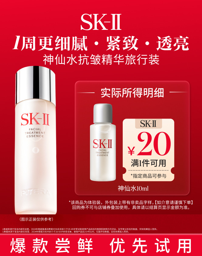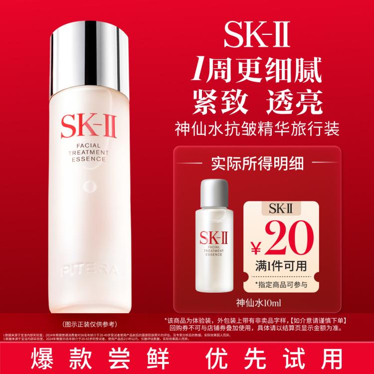 SK-II 神仙水10ml面部精华保湿修护抗皱护肤品旅行装 【售价】:¥20 下单链接: